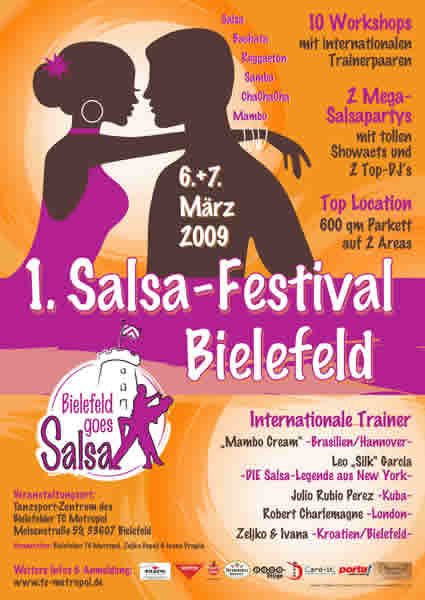 Konnte man die im Vorfeld doch recht emotional geführte Diskussion im Internet in den Hinterkopf verbannen erwartete Euch eine Party, ganz bestimmt nach einer Wiederholung schreit. Die Ostwestfalener Salsagemeinde war sichtlich und zu recht stolz auf ihre Taufe als Festival Austragungsort. Sowohl Programm also auch Lokalität konnten überzeugen. Lassen wir uns im nächsten Jahr nach dem sehr gelungenen Auftakt einfach mal überraschen. Auch wenn ich persönlich nicht zu den Veranstaltern gehöre an dieser Stelle eine Einladung unser Festival nächsten Monat in Münster zu besuchen. Flyer hierfür sind nicht nur in Bielefeld verteilt worden und ein Blick ins Programm lohnt sicherlich. An die Gäste vom Festival Bielefeld ein freudiges und baldiges Wiedersehen auf der Salsa Deluxe in Münster.