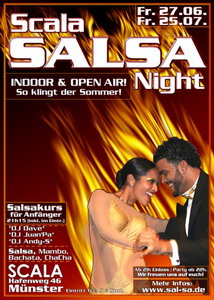 Der neue Gastgeber für die Münsteraner Salsazene dürfte der alten Garde noch gut in Erinnerung sein unter dem Namen LUV. Damals waren die Salsapartys ohne Angabe von Gründen eingestellt worden und die Tanzwütigen waren um eine Attraktion ärmer. Um so lauter war das Raunen als die ersten Flyer aufgetaucht sind, die eine Party im nunmehr in Scala umgetauften Luv angekündigt haben. Aber mal alles schön der Reihe nach :