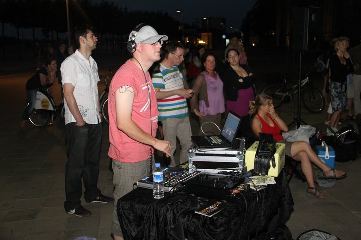 Mit Spannung wurde nun erwartet wie viele Leute sich denn wohl so nach Düsseldorf aufmachen würden um sich die Sache mal anzuschauen. Es war in der Werbung gesagt worden, dass die ganze Sause bei Regen ausfällt und geregnet hatte es nun wahrlich genug. All diese Sorgen waren unbegründet. Düsseldorf und Neuss machten den Anfang und auch Wuppertal ließ nicht lange auf sich warten. Die Tanzfläche wurde schnell zu klein und wir haben sie in Eigenregie einfach mal vergrößert. Natürlich haben wir da nicht weitere Planen auf den Boden geklebt, sondern den Asphalt als Fläche genutzt.