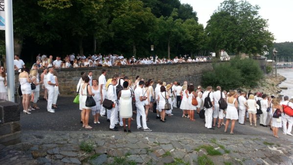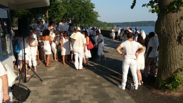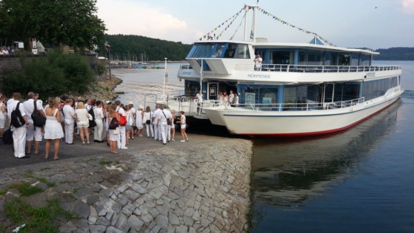 Dort angekommen war, wie angekündigt, die Pre-Party am Ufer in vollem Gange und das „All in white“ Motto war von den Gästen überwiegend angenommen worden. Der Getränkestand wurde, wie erwartet, von einer sehr langen Schlange belagert und so dauerte es seine Zeit bis ich in der Reihe war.